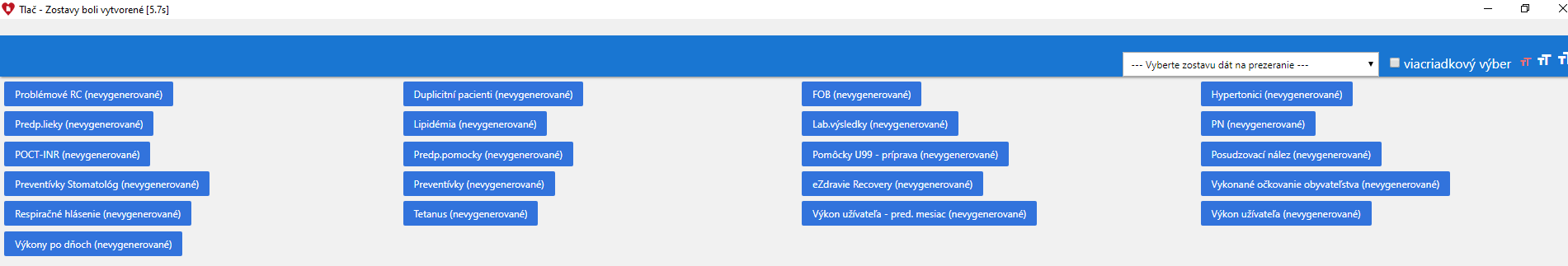 - následne vyberte zostavu Preventívky a klikom na ikonku Obnoviť potvrďte zostavu dát na prezeranie