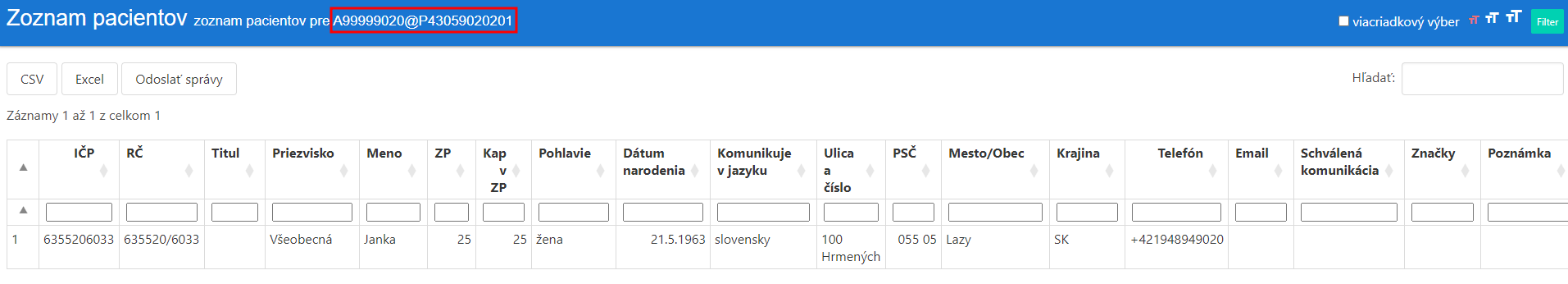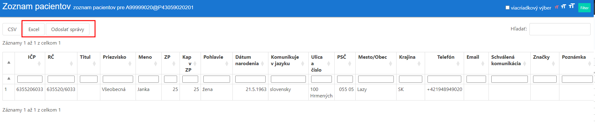 - zároveň si viete zoznam pacientov exporovať buď vo formáte CSV alebo EXCEL
