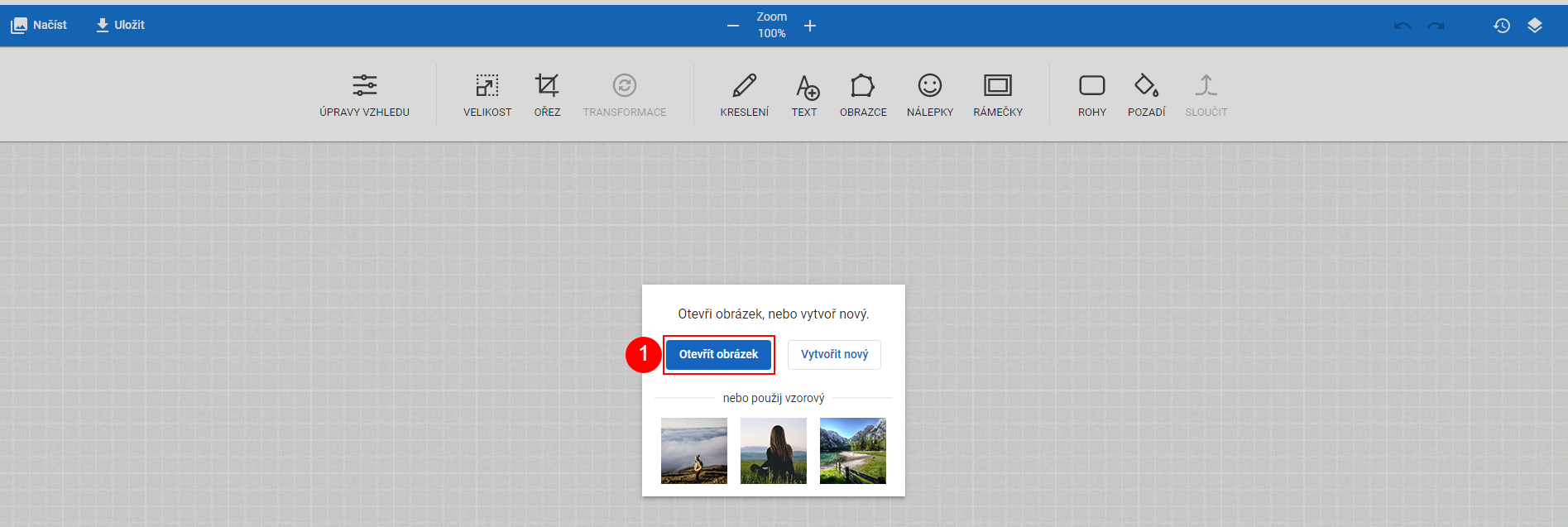 - vyberte možnosť Otvoriť obrázok a vyberte súbor s fotkou, ktorý potrebujete zmenšiť