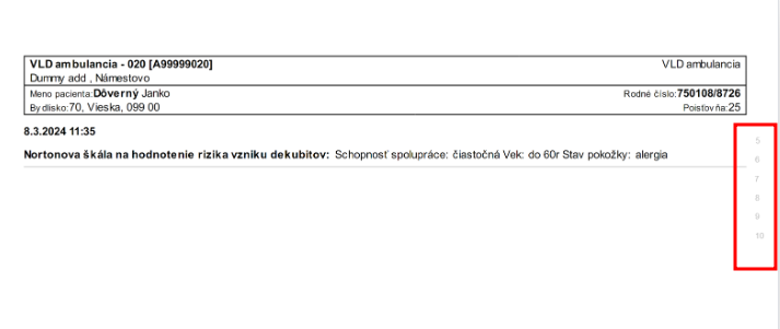 každá tlačiareň tlačí inak, preto priložte 10 cm na pravítku ku 10 na vytlačenej pozícii a skontrolujte či sa Vám zhoduje vzdialenosť od začiatku papiera