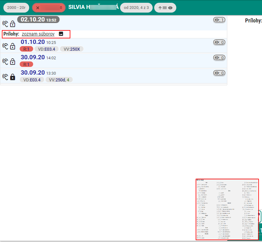 - prílohu si viete otvoriť klikom na ikonku v historickom dekurze