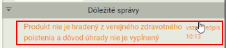 CIS-PROP | Produkt nie je hradený z verejného zdravotného poistenia a dôvod úhrady nie je vyplnený | ODMIETNUTIE | kód produktu (položka KodProduktPZSVykaz) nie je k dátumu predpisu platný v číselníku produktov (číselník kategorizácie+ skupinová úhrada nad rámec kategorizácie/ mimoriadne dovozy) nekontroluje sa, ak: 1) ide o IPL 2) je dôvod úhrady pacienta JASAM alebo NEZML (položka DovodUhradyPacienta) |