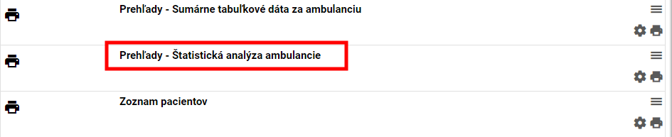 - zadajte @tlac vo vyhľadávacom riadku alebo kláves F5 a vyberiete Prehľady - Štatistická analýza ambulancie