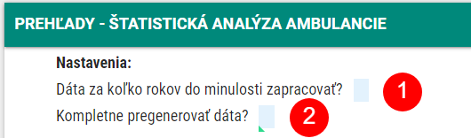 - Dáta za koľko rokov do minulosti zapracovať? - je automaticky nastavené, že ak túto možnosť necháte prázdnu, program Vám vygeneruje dáta za aktuálny rok. Ak by ste chceli napr. údaje aj za predchádzajúci rok, je potrebné zadať číslo 1, t. z. vygenerujú sa údaje za aktuálny a aj za predchádzajúci rok.