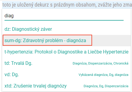 - do dekurzu sa Vám následne vloží sekcia, do ktorej keď zadáte diagnózu, program automaticky za Vás rozozná či ide o život ohrozujúcu diagnózu