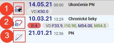 - dekurz odoslaný do eZdravia - táto ikonka Vám detekuje, že dekurz bol odoslaný eZdravia a nie je možné v ňom nič meniť (okrem výkonov)