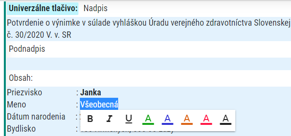 - použitím skratky CTRL+ALT+S si viete v dekurze aktivovať možnosti pre zvýraznenie