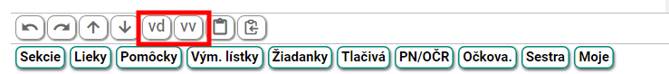 - v základnom nastavení sú pridané skratky/tlačítka pre vd. - vykázaná diagnóza, vv. - vykázaný výkon a r. - recept