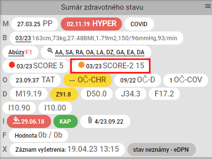 - v sumáre zdravotného stavu pacienta - čip SCORE 2