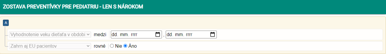 - kliknete na vybranú zostavu, nastavíte obdobie pre zobrazenie, či chcete do zostavy zahrnúť aj EU pacientov a v pravom dolnom rohu potvrdíte Vytlačiť