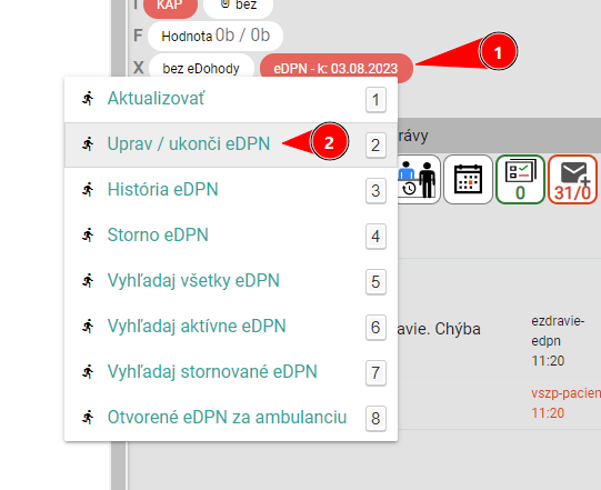 - vyberiete Uprav / Ukonči eDPN
