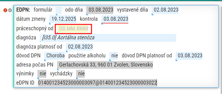 - do políčka práceschopný od vpíšete dátum ukončenia eDPN
