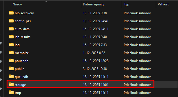 - na hlavnom počítači v C:\ProgramData\curo otvoríte priečinok storage