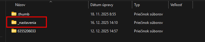 - v ňom vytvoríte priečinok _nastavenia